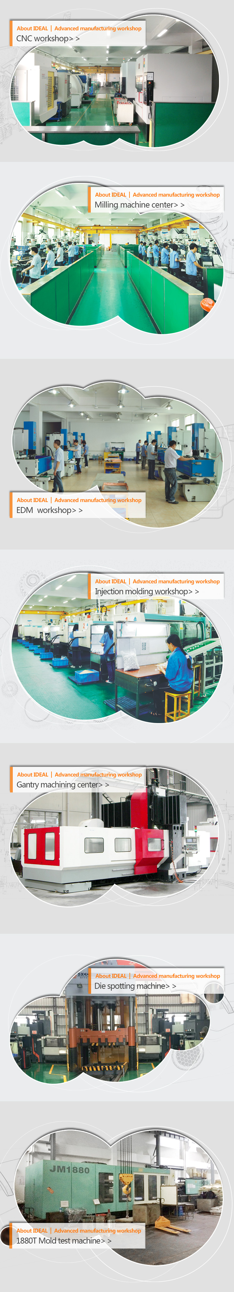 Ideal Mould Tech (ShenZhen) Co.Ltd. was founded in 1997. Following more than ten years of good governance, Ideal has developed into a highly professional plastic mold manufacturerand injection molder. Ideal has grown to become amedium-sized company. Ideal has a bright and spacious 5000 square meters of modern standard workshops.Advanced equipment is installed throughout the plant, including a range of advanced imported machinery supplied by Sodick and Micron. We have about 150 people, experienced management personnel and a group of highly skilled workers. We can very accurately address the specific standards and requirements of the automotive, electronics, home appliances and telecom industries. In addition, Ideal performs general plastic product analysis, product development, mold manufacturing, injection molding and other high technology services in many other fields. Ideal can provide customers with a range of products from small, high precision molds to large size molds. The product types range from large automotive parts, home appliance plastic housings (monitor, TV, iron, vacuum cleaner, stereo, etc.), plastic cases for phones, plastic game machine housings, furniture accessories and plastic housings for a variety of consumer electronics (calculators, MP4 cases, PDA translators, GPS, printers, etc.). Ideal's plastic parts are assembled by the customer into products exported to Japan, Europe and America. A full 50% of Deli molds are exported directly to Europe and Japan. Company Quality Policy is simple - "To ensure quality by management, to ensure progress by quality, to ensure interest by progress". Our commitment to each and every Ideal customer is "Value the contract, keep promises, ensure prompt delivery and excellent service". Our company has achieved SGS Certified IS0 9001 quality management system standards. We are hoping to serve you as our customer and earn the opportunity to demonstrate our expertise and our commitment.